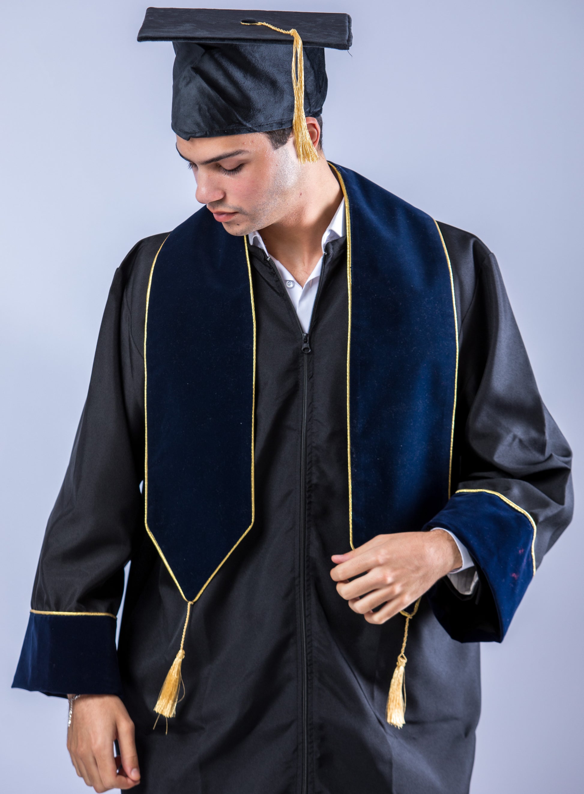 Une toge élégante et traditionnelle, incarnant l’excellence académique et le prestige. Conçue pour les moments les plus solennels, cette toge allie un savoir-faire artisanal à des matières nobles pour une finition impeccable.